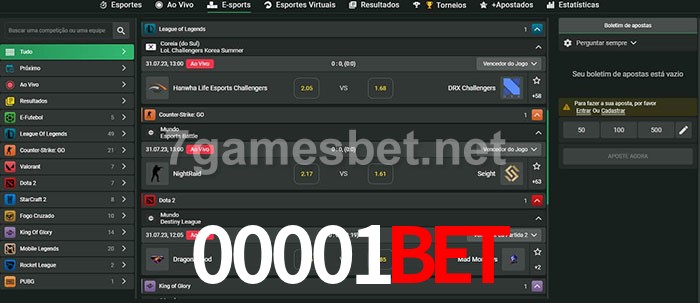 O 00001Bet oferece uma grande seleção de opções de apostas em e-sports com probabilidades competitivas